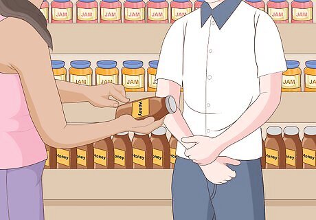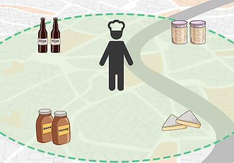 Purchase local gifts for your family and friends. Choosing locally made gifts for your family and friends is a great way to support businesses in your community and to introduce the idea of local eating to the people you care about. Look for locally made honey, nuts, wine, or cheeses to gift for birthdays and holidays. If possible, include the business card of the farmer or maker with the gift. You don't have to stick strictly to gifting food items. You can also choose locally produced soaps, skincare products, candles, or plants.
