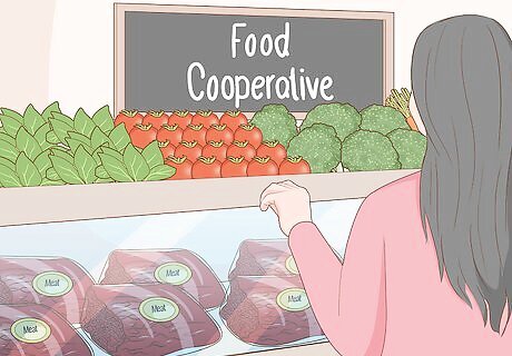 Visit a food cooperative to find a wide range of local foods. Food cooperatives or co-ops are great initiatives that sell local food on behalf of farmers and producers, similar to a grocery store. This is a great way to access a full range of foods that are available within your local community. You can purchase seasonal produce, meat, poultry, and dairy products from co-ops. Food co-ops are community owned and operated.