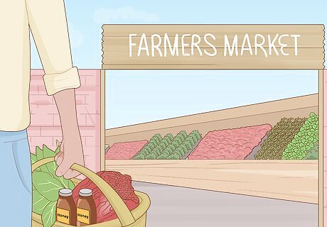 Shop at farmers markets to connect with farmers in your community. Farmers markets are one of the best places to shop if you're a locavore! You can buy locally produced meat, poultry, eggs, produce, honey, and dairy products from farmers markets. This is also a great way to get to know farmers, to ask questions about the food, and to support local businesses. Farmers markets are also a great way to meet other like-minded people.