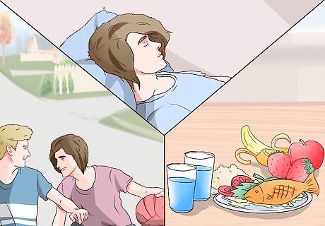 Work out. Exercise is beneficial for your mental, emotional, and physical health. Hit the gym five days a week: twice for cardio, three times for strength training. Don’t forget to incorporate two rest days into your routine. Here are some different ways that you can exercise: Take a spinning class. Rock climb. Lift weights with a friend. Many schools offer weight lifting classes, too. Swim laps. Go for a hike with a friend. Take a “boot camp” style class.