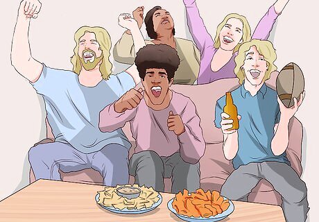 Spend time with your friends. Single people more frequently have closer ties with friends, have more friends, and are better friends to others. This phenomenon occurs because single people have more time to spend with their friends. Take advantage of your single lifestyle to hang out with your friends, make new friends, and forge better relationships with friends both new and old. Instead of going to parties with your significant other, you can go with your group of friends. You don’t have to worry about keeping track of your date or making awkward small talk. Designate at least one night a week where you and your friends spend quality time with each other. Whether it’s a movie night or watching a sports game, make time to hang out with your friends.