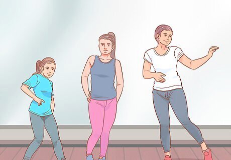 Start by training as a dancer. You can't teach what you don't understand, so find a genre you love and work hard to learn it. Take dance classes and private lessons, and consider participating in competitions, performances, and dance intensives to constantly improve your skills. In addition, dancing is physically demanding, so take good care of your body by eating well, practicing proper form with an instructor, and knowing when to rest. It can take years of training before you're ready to teach others. Many professional dancers start dancing as young children, although some don't take their first lesson until much later. Try out a few different dance styles to see what you like. Some of the most popular genres of dance include: ballet, tap, ballroom, jazz, hip-hop, liturgical, and modern dance. Go on auditions if you want to dance with a production, like as a back-up dancer for a musician or a stage show. This will also help you network, which could help you later in your career.