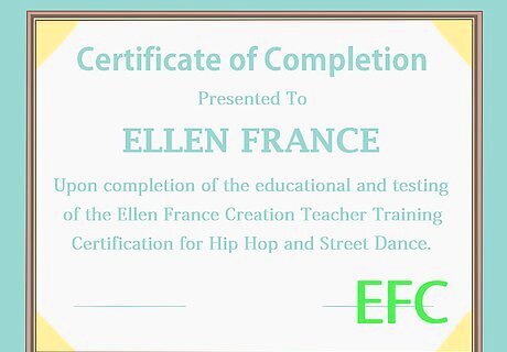 Pursue a bachelor’s degree in dance for advanced opportunities. If you want to teach in a public school or some of the more competitive dance studios, you’ll need to complete a dance program at a college or university. There are a number of schools that offer degrees in dance, although you can also major in performing arts or even your preferred genre of dance if you can find a school that offers a program. It will likely be easier to find a school offering programs specific to classic styles of dance, like ballet, than more modern styles like hip hop. However, a general dance or performing arts degree will typically be sufficient if there isn’t a program for your dance style.