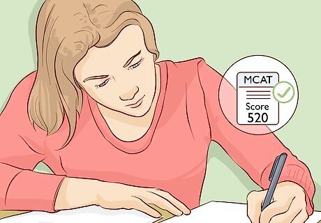 Get a competitive score on the MCAT. The MCAT, or Medical College Admission Test, is the standardized test for entry into med school. It's a multiple-choice test on your knowledge of life science, chemistry, biology, and social science. It also measures critical thinking and problem-solving skills. This is a difficult, day-long examination, so begin studying several months in advance. Get certified test books and complete practice exams to get acquainted with the exam material. Spend time reviewing the key concepts that you learned throughout your pre-med program to improve your chances of getting a competitive score. MCAT scores range from 472 to 528. Top scores are 514 or above, and competitive scores are between 508 and 513. Scores below this may hurt your chances of getting into medical school, so consider retaking the exam if you don’t get a good score. Required MCAT scores vary from one school to another. Look at the admission requirements for each program you’re considering to see the recommended MCAT score. Your college may offer MCAT prep classes. Take advantage of these to help prepare.