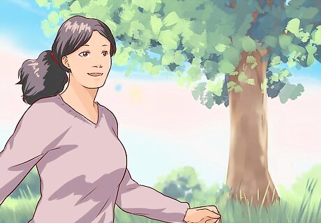 Focus on the breath. Mindfulness is also about paying attention to your breath. Breathing is a vital bodily function that we often do not notice throughout the day. Start making a conscious effort to focus on your own breathing. Breathing is a natural process that follows a certain rhythm. Therefore, when our minds wander and stressful thoughts occur, focusing on the breath can help us stay calm. It can also allow us to return to the present moment and appreciate it. If you find yourself plagued with negative thoughts pause for a moment and appreciate the fact you're breathing. Pay attention to how your breath rises and falls. See how deeply you are breathing. Close your eyes for a few minutes and just treasure your breath and the moment.
