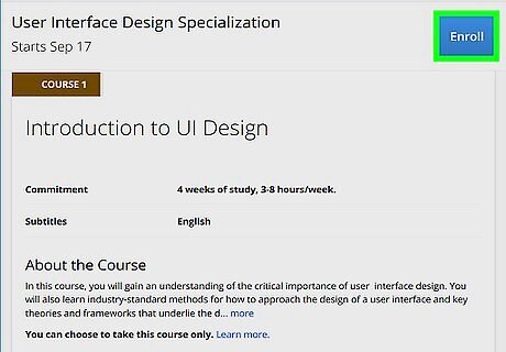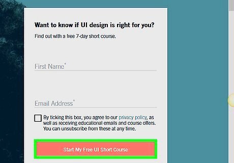 Enroll in an online course or degree program to formally study design. There are several universities and technical schools that offer formal programs in design, with some offering specialized programs in graphic design. You might also opt to take part in an online course to learn about graphic design. Some of the more well-known online programs in graphic design are offered by Bloc, General Assembly, and CareerFoundry. Note that, while these programs are less expensive than traditional brick-and-mortar schools, they are not free.