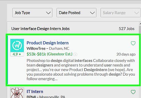 Apply for positions that match your skill level and experience. If you're just starting out as a UI designer, you probably won't be able to land your dream job immediately (even if you think you're qualified for it). Be willing to accept entry-level positions that match your experience level and work your way up. Be willing to take on freelance design jobs, especially if you're just starting out. Not only are freelance jobs more abundant than formal design positions, they will also give you useful professional experience that may translate to a more secure job down the line. You should certainly apply for jobs that aren't entry-level if you think you're able to perform them. However, you should be realistic about your prospects if you don't have prior experience.