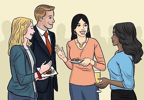 Talk to people before you rush to eat. There will be plenty of time for eating, and the most action in a party usually happens near the beginning. Have some conversations with people and be social! Some great questions to ask at parties include: How do you know the host? Name something that you like about the host? Talk about the location of the party, ask do you live around here?
