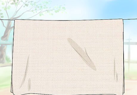 Allow linen to air dry. It is generally recommended that you never dry linens in the dryer. It is better for the fabric to have time to air dry. Laying the linen out flat will let it dry the best, although this is not always an option. You can also hang it on a clothesline, or drape it on a porch railing. If you do the latter, you will want to cover the railing with another cloth to keep the linen clean. Depending on what the linen is for and if you are going to use it immediately, this is a good time to iron the linen while it is still damp. Tumble drying linen can cause it to wear out faster and to shrink.