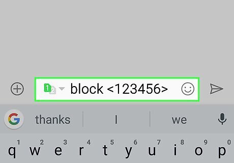 Add the number or shortcode in brackets. You can use the 5 digit shortcode or phone number. For example, " block <1234567891>." This code must be at least 4 characters long.