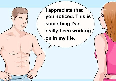 Give sincere compliments to others. Compliment people often for the things they do that you genuinely admire. Never give a compliment that is phony. When a person compliments you, don't launch into a discussion of how great you are. Be humble, accept the compliment and say "thank you." If you need to say more, say something such as, "I appreciate that you noticed. This is something I've really been working on in my life." You don't always have to return a compliment if you don't have anything sincere to say. A simple "thank you, I appreciate you saying something" is sufficient.