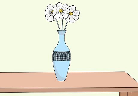 Make it sparkle. Add crystals, rhinestones, and other shiny objects to lamps or vases. Place these on tabletops and bookshelves to bring a bit of light into areas that may otherwise be dull and boring. Add metallic finishes to shelves and frames to help reflect light and brighten up your room.