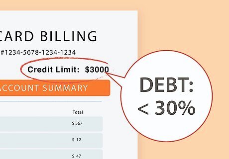 Maintain a good ratio of debt to credit. 30% of your credit score is determined by how high your debt is compared to your maximum credit limit. Ideally, your debt should be less than 30% of the amount of credit that you are approved for. This is where only paying your minimum balance is likely to adversely affect your credit. If you only pay the minimum balance, your debt is likely to increase progressively, lowering your credit score. This means that the higher your credit limit and the less that you use it, the better your credit score will be. Avoid department store credit, because these often have very low limits. Thus, if you use it at all, you will surpass the ideal 30% ratio and negatively impact your credit score.