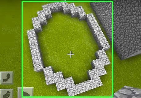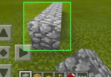 Create an outline for your wall, using a block of your choice. Cobblestone is a good option. Decide how many blocks deep and wide you would like it to be. If you decide it's too small, that doesn't matter because it's easy to expand it later. Obsidian (or bedrock if you are on Creative mode) is also a very good choice as it can withstand explosions, and is hard to mine. Try to stay away from blocks like wool or wood, as they are easy to burn down.