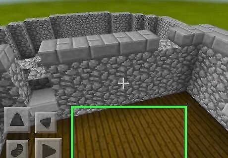 Build the walls up to your desired hight, leaving gaps at regular intervals along the top. These gaps (called crenels) allow your friends to shoot enemies with a bow without having to jump awkwardly whenever they fire. Add a wood plank walkway to the top of the walls below the crenels to create battlements.