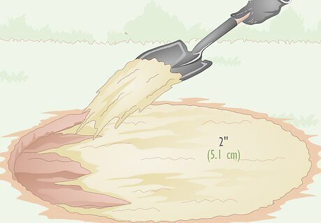 Fill the excavated pit with 2 in (5.1 cm) of paver sand. Pour paver sand into the site you just dug out and spread it out evenly with your spade. Compact it and level it out by hitting it with the flat side of the spade. This will create a solid, level base for the fire ring as well as help with drainage of rainwater. Paver sand is sand used in all kinds of masonry work to create level, solid surfaces on which to lay stonework as well as fill in gaps between stones.