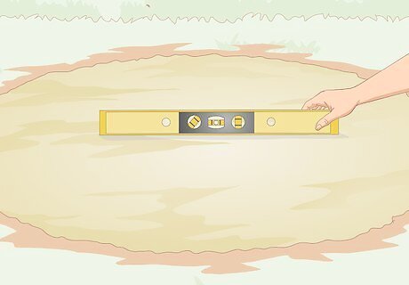 Check the levelness of the pit’s foundation using a level. Lay the level across the compacted sand. Look at the bubble to make sure it is in the middle of the 2 black lines in the glass tube, which means that the surface of the sand is level. If the foundation is not level, you can make adjustments by adding more paver sand to 1 side and compacting it until you get the base as level as possible. It’s important to have a very level foundation for the fire ring so the stones align properly.