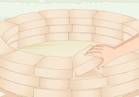 Arrange the first ring of stone blocks on top of the new foundation. Bring the 12 retaining wall blocks you set aside back to the fire pit. Arrange them in a ring again on top of the sand base. Don’t try to put the blocks together extremely tightly, but rather leave narrow gaps between the inside walls of the blocks to allow for airflow. Good airflow will help the fire burn better and also let heat escape. The gaps can be about the width of a pencil or a little smaller.
