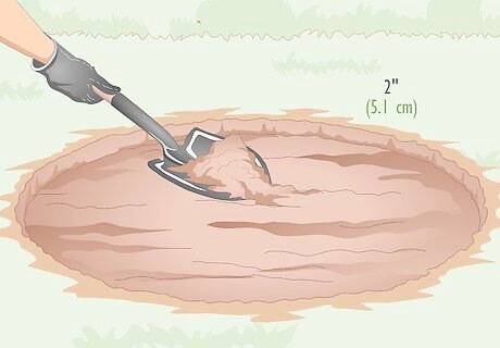 Dig about 2 in (5.1 cm) down into the ground inside the outline. Use your spade to dig out any sod within the outline of the fire ring and down into the soil to create a shallow pit that is approximately 2 in (5.1 cm) deep. Try to excavate as evenly as possible so there are no spots that are deeper than others. You’ll be able to level out the pit as you lay the foundation, so don’t worry too much about getting it perfect at this stage.