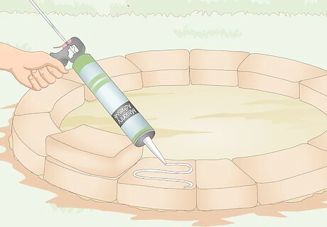 Use a caulking gun to apply masonry adhesive to the top of each block. Fit a tube of masonry adhesive into a caulking gun. Squeeze out a bead of the adhesive in a zig-zag pattern across the middle of the top of each block. The masonry adhesive will make the next row of stones stick in place and add stability to your fire ring. However, you can skip this if you want to. The stones are heavy enough that they will stay in place on their own as long as nobody pushes them or picks them up.