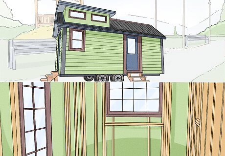 Planning the project is the most important first step. You wouldn't try to build any other construction project without proper planning, so your tiny house is no different. Early steps include finding land or property for the house, designing the house, finding out where to get materials, and obtaining financing or loans if you need them. If you don't have a lot of experience designing a house, it's best to have a professional look at your plans and determine if the house will be safe. Also look into the legal side of building a tiny home before you start. States and counties all have different laws about the permits and codes you need to build a home. You'll also need a wheeled trailer if you’re building a mobile home.
