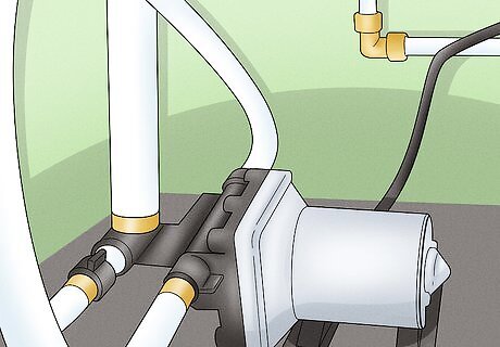 You'll need a tank and pump system or a hookup to get indoor plumbing. A water tank with a pump system is great for a mobile tiny house, like with an RV, or if you don't live near any water pipes. For a hookup, you'll need to attach your house to the local water system with a pipe or hose. This will only work for a house fixed in position. In either case, you'll need to build a plumbing system with pipes in your house. If you're not familiar with building plumbing systems, then this is definitely something you'll need a professional for. Any problems with the plumbing can flood your house. There is also the option of living totally off the grid and using an outhouse and well water instead of installing indoor plumbing.