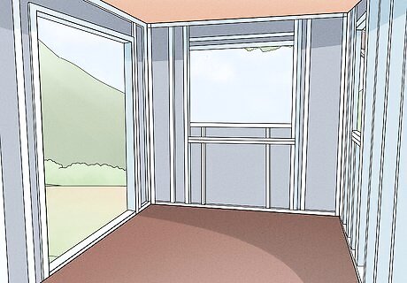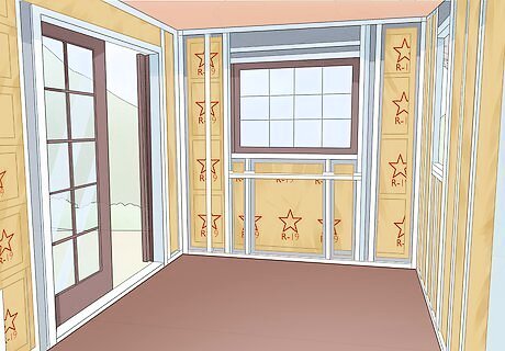 Adding cosmetics and building the interior are the next steps. Once you've completed the shell and roofing, there's still a lot of work to do. Constructing the interior is how you'll really make your house your own. These are some of the general steps involved: Insulating the interior. Putting up walls. Hanging shelves and installing doors. Adding cosmetics like painting or paneling. Bringing in any appliances you’ll be using.