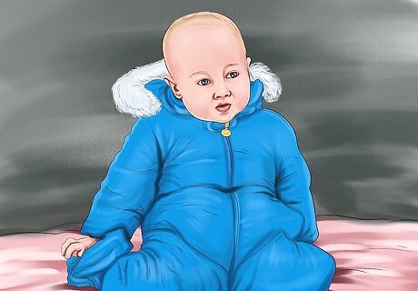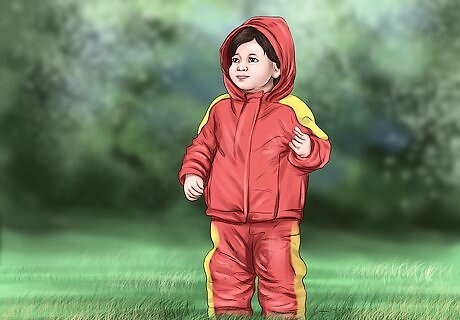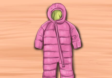 Get a one piece snowsuit if your child is going to be exposed to snow and very cold weather. A one piece snowsuit is a complete piece of clothing, so it is very warm. It consists of pants, a jacket and a hood that are all attached. This suit can usually be closed in front. Some suits have openings at the feet while others have booties attached. If your child is just playing for a bit in cold weather, you can get them a one piece suit with openings at the feet. But if you feel it will be too cold outside for any openings, then get a suit with closed feet. That way the suit will be more resistant to the cold weather.