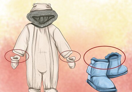 Get gloves for your toddler and mittens for your baby. Gloves do not fit little baby hands very well, so use mittens for them instead. Gloves and mittens will keep your child’s hands insulated, especially when they are playing outside. Make sure you have several pairs of gloves or mittens ready in case one pair gets wet or your child loses one pair.