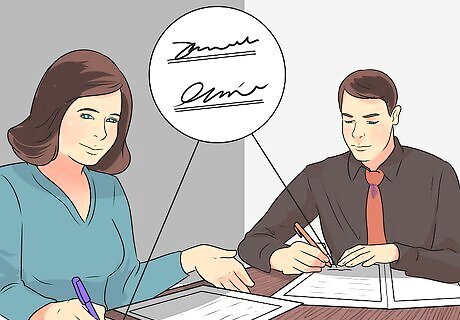 Sign the contract. You should take a couple of days to review the contract, preferably with the help of a lawyer. Then sign the deal. If any of the details of it seem disadvantageous, try to renegotiate a better deal. Consider not just the financial stipulations of the contract, but also details about the care of the house. In addition to basic stipulations, like payment time, grace period, payment amount, the contract should have stipulations pertaining to the maintenance of the property, including who will be responsible for property taxes and homeowners insurance. Similarly the contract should indicate who will fix property damage, though this is almost always the responsibility of the buyer.