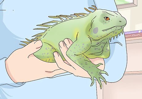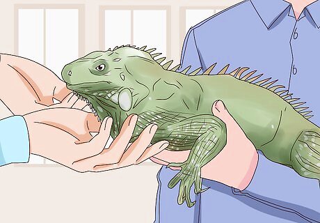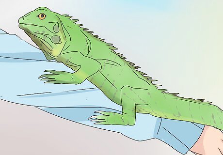 Notice if the lizard is relaxed around you. If the iguana has been socialized properly, it won't be startled by you. In fact, it may even try to climb up your arm or hand. Ones that haven't been socialized will try to run away from being caught. It's fine if the iguana is young and unsocialized, as you still have time to socialize it. If it's completely unresponsive, it's too weak or sick to respond.