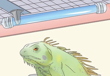 Buy the ultraviolet lighting your iguana will need. This type of lighting is also referred to as UVA and UVB lighting. This lighting gives your iguana the light it needs to make vitamin D, an essential nutrient. Speak to an associate at a store that sells reptile accessories to find the best lights for your iguana.