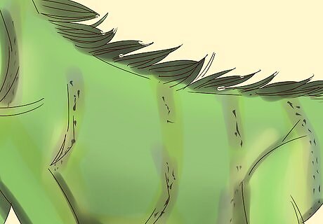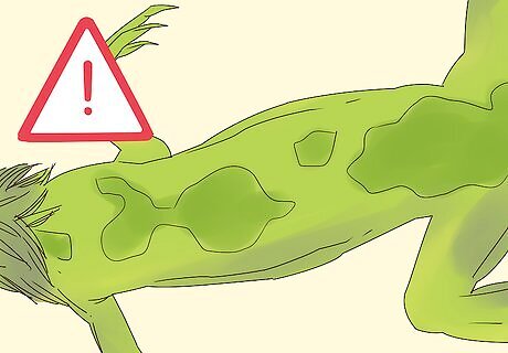 Check for tight, green skin. Loose skin could indicate the iguana has lost weight and is sick or unhealthy. The skin should look taut against the iguana's body, and it should be bright green, not dull-looking. The back end of the lizard at the near the legs and tail should look round not bony. However, if the back legs look swollen with hard knots, that could indicate a calcium deficiency. The "green" iguana is something of a misnomer. They typically are green, but they can also be brown, red, or blue. However, you want the skin to look bright and healthy either way. While looking at the skin, check for mites, which are little red, black, or orange dots that move around.