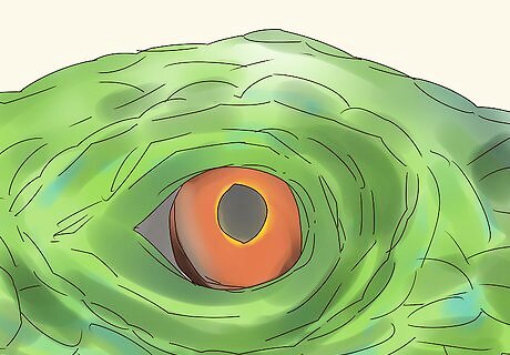 Look for bright eyes that aren't sunken. If the iguana's eyes appear to be sunken in its head, that could be a sign of sickness. Also, check for drainage and crustiness, which could indicate a respiratory infection. A healthy iguana will look around and follow your finger with its eyes or head if you move it around nearby.