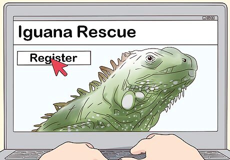 Check with local rescues to provide a home to a rescued iguana. Many rescues will take in unwanted iguanas from owners who can't care for them anymore. You may find rescues that specialize just in reptiles or even just in iguanas. Alternatively, some rescues take all animals, including cats, dogs, and iguanas, so look around in your local community. Try doing an internet search for iguana rescues in your area or ask your vet if they know of any.