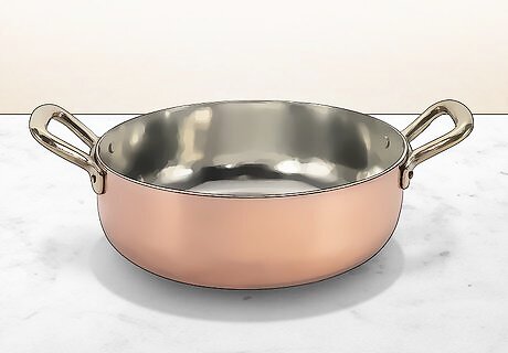 Settle on copper pots and pans for professional level food preparation. Copper cookware is used most often by chefs as it conducts heat well, allowing you more control over how your food cooks. However, it is the most expensive type of cookware and requires regular polishing. Using copper pots with acidic foods may also result in a funny after taste or discoloration. Buy copper pots and pans coated in enamel to avoid any after taste or discoloration when cooking acidic foods.