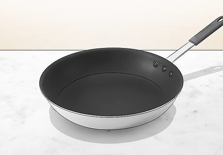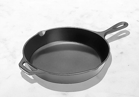 Buy a skillet if you fry a lot of foods. Skillets are not only excellent for frying, but also for scrambling eggs, as well as sautéing vegetables and meats. Buy an 8 in (20 cm) skillet if you're cooking for 1 or 2 people. But if you're frying for a household of 4 or more, buy a 12 in (30 cm) skillet. Certain types of skillets can also be used in the oven. If you're looking to roast beef or bake ham, buy a 12 in (30 cm) skillet. Consider a skillet with a riveted handle for sturdy construction.