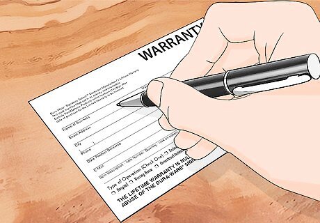 Protect your investment by purchasing a warranty. Buy a limited lifetime warranty from the manufacturer or the retailer at the point of purchase. This warranty will cover manufacturing defects, allowing you to replace cookware that is chipped, cracked or otherwise damaged. Be careful you're your cookware however, as your warranty will not cover damage you cause through accident or neglect. Retail warranties usually cover products for a certain window after purchase. However, you can buy a limited lifetime warranty for most cookware that allows you to return damaged pots and pans directly to the manufacturer past the retail window. These kinds of warranties also usually require proof of purchase, so keep your receipt and copy of your warranty in a safe place.