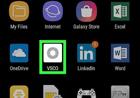 Open VSCO. This app icon looks like a black circle made out of squares on a white background. You can find this app on either your home screen, in your app drawer, or by searching.