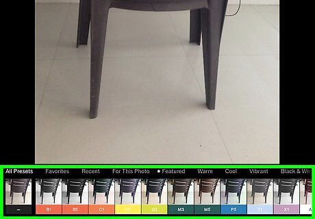 Select the photo you want to use this filter on. Tap a photo to select it, and tap the checkmark on the top-right to use it. This will open the selected picture, and apply the selected filter on it. You can also select a different filter from the filter list at the at the bottom of the editing screen.