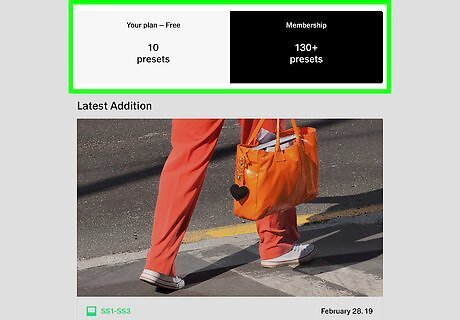 Tap the blue Join VSCO X button. You can select the Start your free 7-day trial button if available to sign up for a free trial of the premium membership, instead. Filters and preset bundles are not available for individual purchase on VSCO anymore. You're limited to the standard filters without a VSCO X membership.