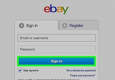 Go to eBay.com, click on "Sign in" and log in using your eBay user name and password. If you do not have an eBay account, click on "Register" and follow the steps to create your account. eBay will send you a verification email after you have submitted your account information form. Retrieve this email, click on the verification link provided and you will be directed to eBay and acknowledged as a verified user. Once your new eBay account has been verified, log in using your eBay user name and password.