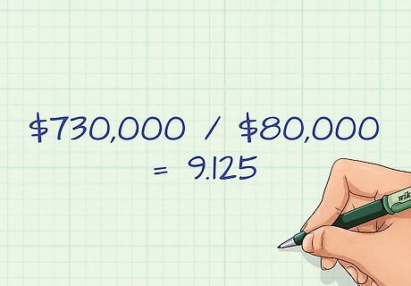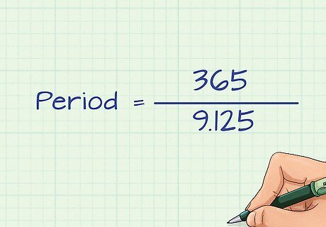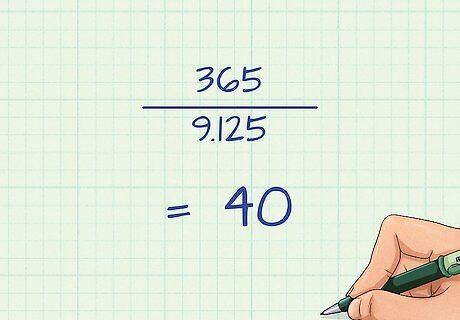Solve the equation. Once you have your variables in the equation, you can simply divide to solve the equation. In the example, the equation solves as 365/9.125= 40 days.