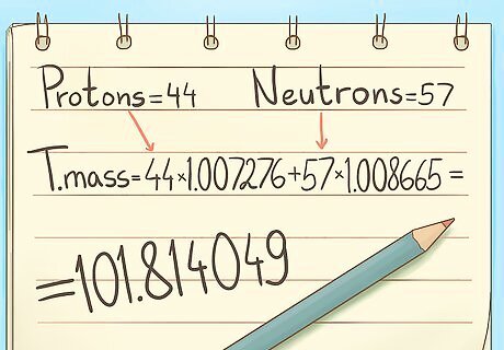 Calculate the total theoretical mass of the nucleus. Multiply the amount of protons by its mass in atomic mass units (approximately 1.007276u) and add it to the amount of neutrons multiplied by its mass (approximately 1.008665u). Note that your teacher may provide you a specific value to use for these masses, or specify how many significant digits you are required to use.