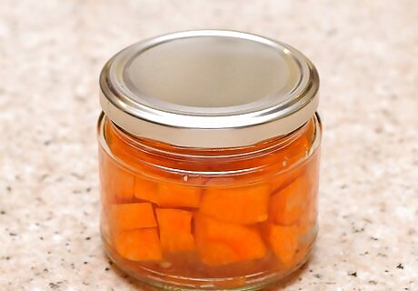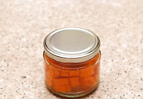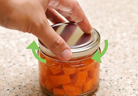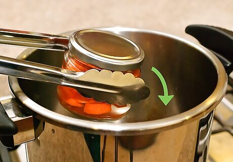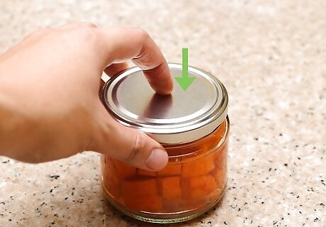 Check the jars for proper sealing. An improper seal can lead to dangerous bacteria growing in your jars. You can check the seal by gently poking the top of the jar with your finger and listening for a popping sound. If you hear this or feel the lid flex under your finger, the jar is improperly sealed. Improperly sealed jars can be stored in the refrigerator and eaten as you would normally. You can also repeat the process to reseal the jar, but in many cases, this can result in the carrots becoming overcooked.
