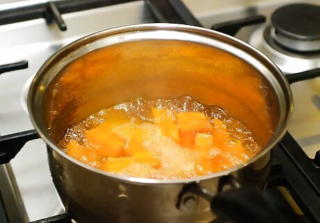 Place the carrots in the boiling pot of water. Since your pressure canner will also cook the carrots, you don't need to boil them in the water for a long period of time. Five minutes will be enough to prepare your carrots for canning.