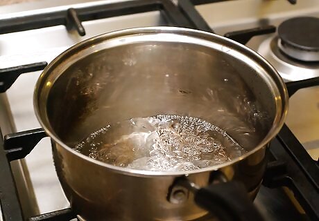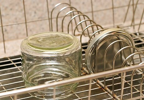 Sterilize your jars and lids. You can do this easily with your home dishwasher. Simply set it to "sanitize" and allow it to run through a cycle with your jars and lids inside. Once the cycle is finished, your jars will be ready for canning. If you do not have a dishwasher, you can preheat your oven to 225°F (107.2°C), put your jars in a roasting pan, and insert the jars into your oven for about 20 minutes. Use caution when removing the jars. They'll be very hot after sterilizing. You can also use a water bath canner to sterilize your jars. Place your jars onto the rack of the canner and fill it with enough water so the jars are filled. Boil the jars in the canner for 10 minutes, then use your jar lifter to remove the hot jars. Lids cannot be sterilized through the previously mentioned methods. Doing so can damage the sealing compound on them. Lids can be sterilized by submerging them in water and then simmer the water in a saucepan. Do not bring your water to a rolling boil. Simmer the lids for 5 to 10 minutes and then remove them with tongs.