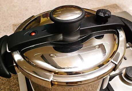 Heat up the pressure canner. Different pressure canners will have different features, so you should always follow the directions that came with your pressure canner for best results. The altitude of the area you live will influence the setting you need to use with your pressure canner, so you should adjust your canner accordingly. Canner Adjustment Table Altitude in Feet Dial Gauge Canner Weighted Gauge Canner 0-1000 11 10 1001-2000 11 15 2001-4000 12 15 4001-6000 13 15 6001-8000 14 15 8000-10,000 15 15