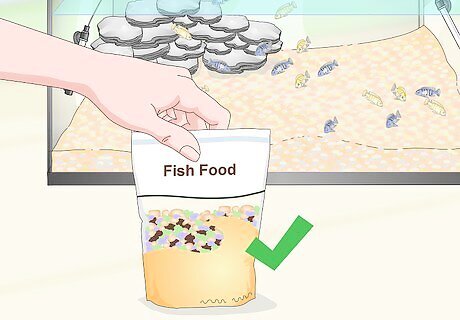 Pick food designed for herbivorous fish. These fish should mainly eat a low-protein diet of algae and other plant life. You can find flakes, pellets, and granules that should satisfy this type of fish. Aim for a food that has about 35% protein, which it should say on the packaging.