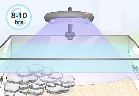 Give the fish 8-10 hours of bright UV light per day. You can use 2 40-watt bulbs for a smaller tank or 4 40-watt bulbs for a deeper tank. Turn the lights on during the day and off at night, so the fish have a natural cycle.
